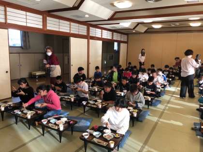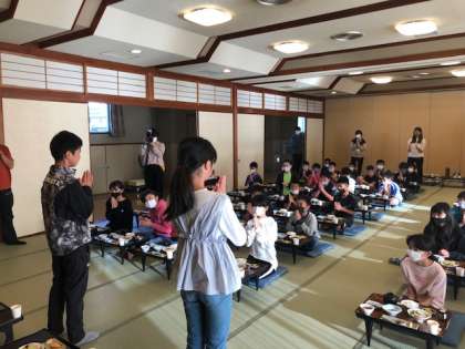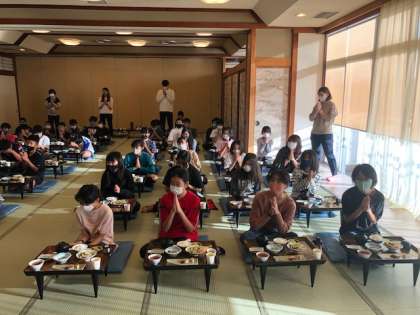 朝食は、時間前に全員集合!予定より早くいただきまーす!