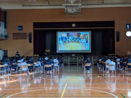 3月3日(水)、6年生は講堂で1年生から5年生が作成した卒業に向けてのメッセージ動画を見ました。各クラスの雰囲気がわかるメッセージ動画で6年生の子どもたちもそのメッセージにとても感動していました。
