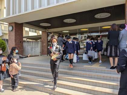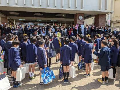 花道を通って、正門で最後のお別れです。