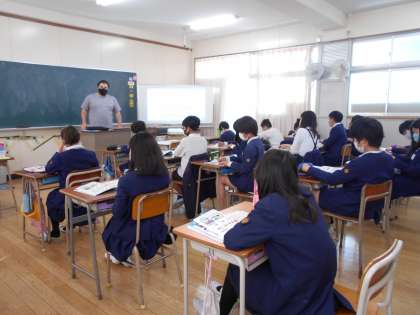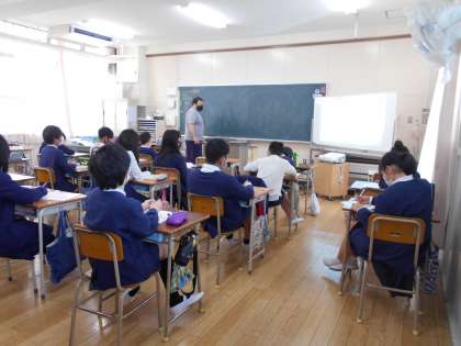 今日からC-NETの授業がはじまりました。週1回高学年を中心にALT(Assistant Language Teacher)と一緒に英語の学習をします。