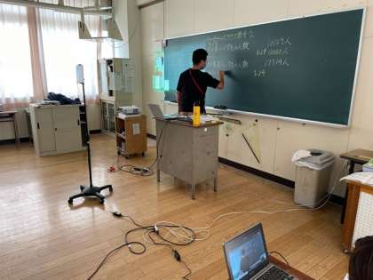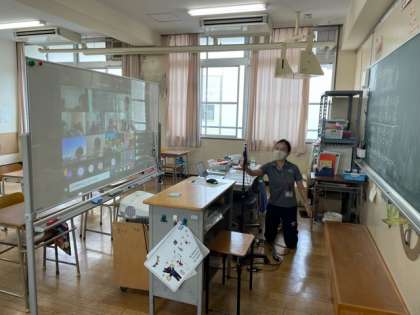 今日は、久しぶりに登校してきた児童もいましたが、体調不良や心配で休んでいる児童は50名以上いました。家庭にいる児童にもできるだけオンライン学習に参加してもらえるように各学年で工夫していきます。学年や学習内容に応じて方法は異なりますが、子どもたちは積極的に取り組んでくれています。全員がオンライン学習のときは、担任も寂しそうでしたが、子どもたちが登校している中でのオンライン学習は、苦労しながらも楽しく行っていました。