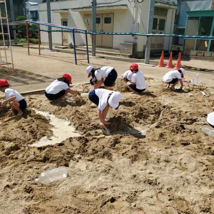 1年生の生活科「土あそび・どろあそび」の学習の様子です。