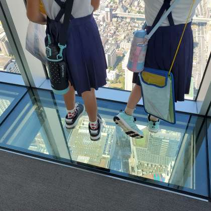 西側は床が透明です。下を見て「うわぁ」と声を出しながら眺めていました。