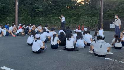 ホテル「みち潮」に到着し、入所式と避難訓練を行いました。