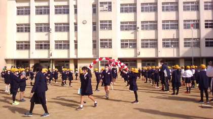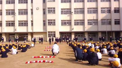 今日は、運動場で久しぶりに全学年が揃い、青空の下で卒業生を見送ることができました。