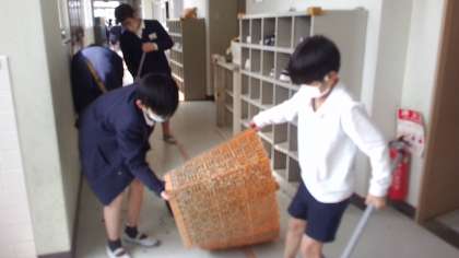 明日で卒業する6年生が、6年間の感謝の気持ちをこめて学校の清掃をしました。