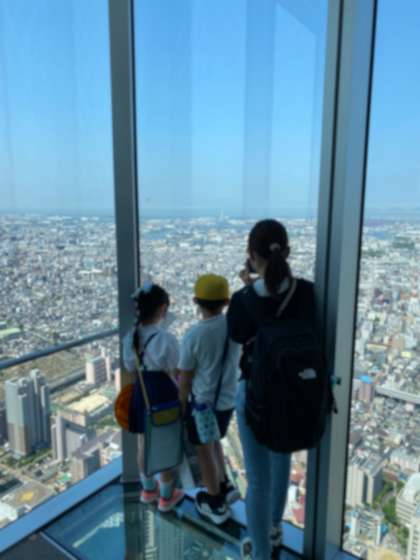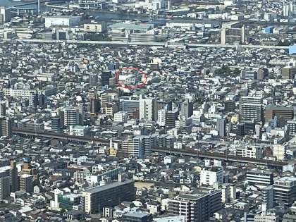 あべのハルカスから見ると、わが橘小学校は南西方向にあります。