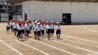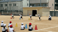 6年生のリレー走を見た後、1年生がかけっこと玉入れを披露してくれました。