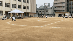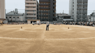4年生の個人走と団体競技です。団体競技では、台風の中心になる児童がしっかりふんばって旋風を巻き起こしている姿が印象的でした。