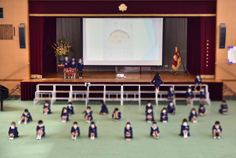 1年生発表「がっこうだいすき〜学校探検〜」、2年生発表「橘の町について伝え合おう」、3年生発表「“橘の福祉”について考えよう!」の写真です。