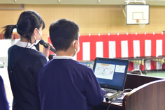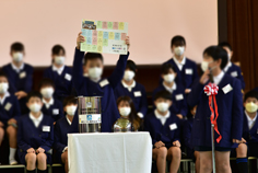 6年生発表「橘小学校100周年記念プロジェクト」、「100周年タイムカプセル紹介」の写真です。