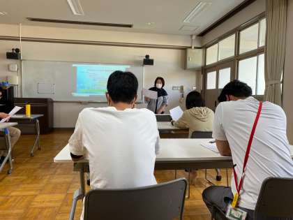 放課後に、てんかん発作や食物アレルギー、気道異物などに対応する研修を実施しました。いざという時に慌てず落ち着いて行動できるように、先生たちも日々勉強しています。
