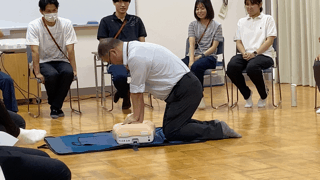 プール水泳が来週から始まるので、万が一のときに備えて教職員は毎年受講しています。