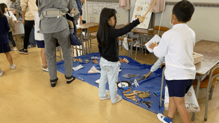 2年2組のお店は「魚つり」です。難易度別に得点が決められていますが、最高得点のキラキラ魚を釣り上げる子どもがたくさんいました。