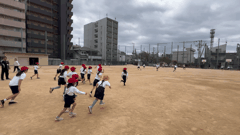 今日は、2年生が記録を取る前に、おにごっこ「ふえおに」をしていました。