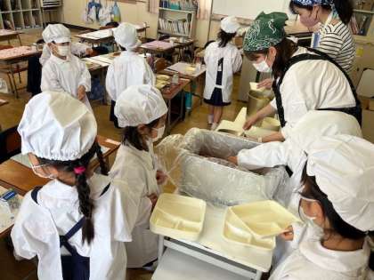 パンや牛乳、食器の配り方や運び方に少しずつ慣れていきます。