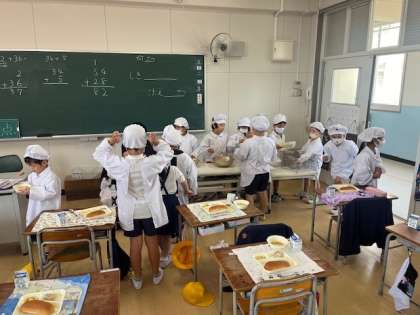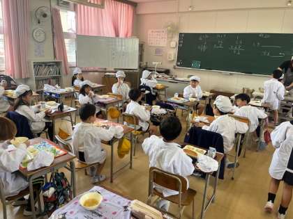 自分たちで、配膳も上手になり、落ち着いて食べることができるようになった2年生でした。