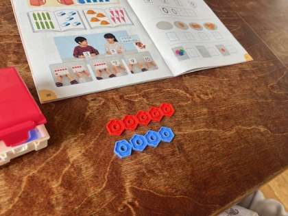 そこで、おはじきを絵の上に乗せて数を調べていました。