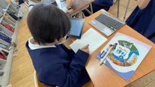 身体の消化器官(胃や小腸など)の1つを選び、タブレット端末で調べ学習をしていました。