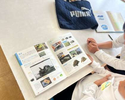 物語だけでなく、亀を飼っているからと生き物図鑑、面白いなーと手にした雲の図鑑を見ている子どももいました。