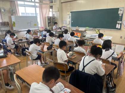 4年のクラスでは、一人一人が自分で選んだ本を静かに読んでいました。