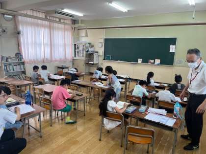 昨日と今日の二日間、希望した子どもが学校へ来て、夏休みの宿題をしたり、わからないところを教えてもらったりしています。