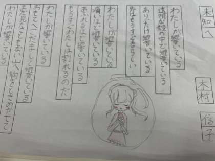 5年生は、木村信子さんの未知へという詩の視写に取り組んでいました。