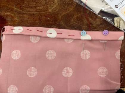 トートバッグ作りに挑戦しました。今回はポケット部分の「しつけぬい」でした。