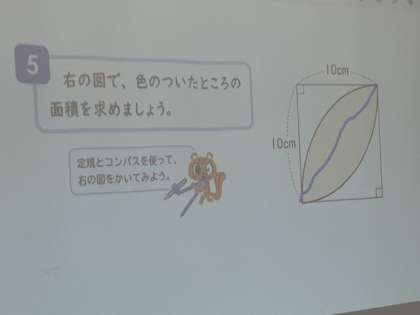 円を含む複雑な図形の面積の求め方を考える学習でした。
