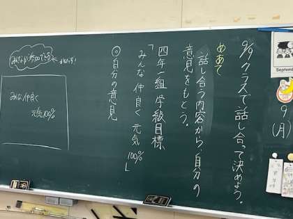 話し合う内容から意見をもとうというめあてで、学級目標について話し合い活動をしていました。