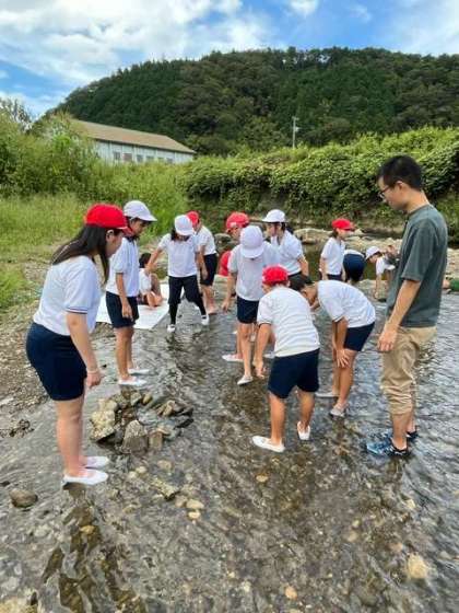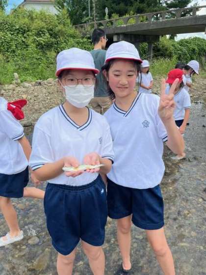 川の水は冷たい〜!!
