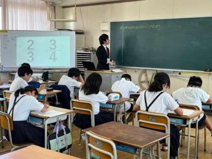 算数の習熟度別で、分母と分子のちがう分数の大きさ比べをしていました。
