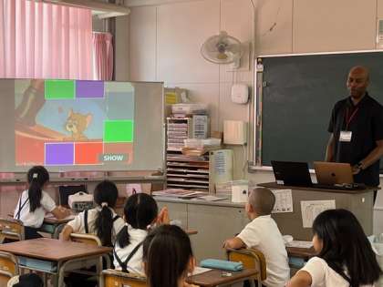 好きな色を英語で答えるとパネルが外れ、中からキャラクターが表れます。
