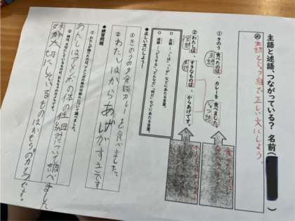 主語と述語の関係を調べ、正しい文を書くことをねらっています。
