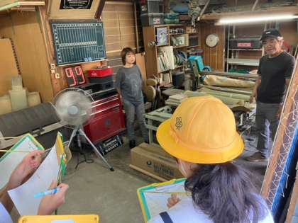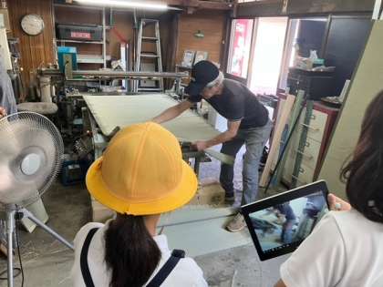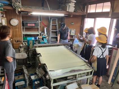 橘小学校のすぐ隣にある吉川畳店へ見学に行きました。