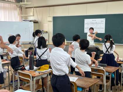授業の後半では、歌唱「赤とんぼ」が、校舎に響いていました。