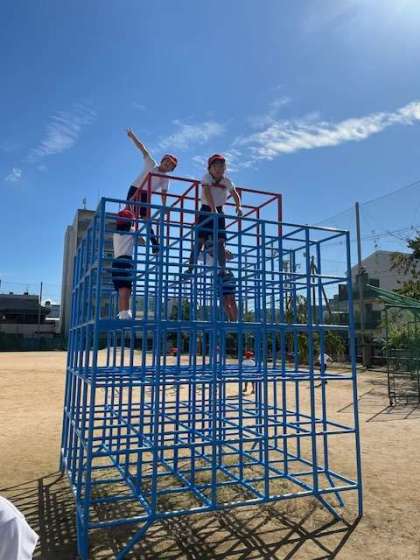 ジャングルジムの鉄格子に寝転んでみたりしました。