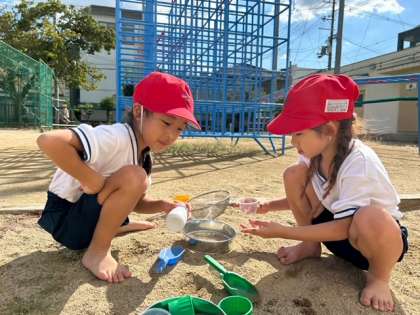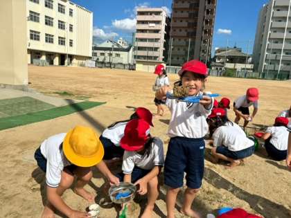 「すなやつちとなかよし」の学習で、砂遊びをしました。