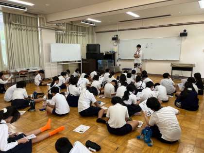 1.2組合同で、遠足のしおりをもとに、行き先や目的などを聞いていました。