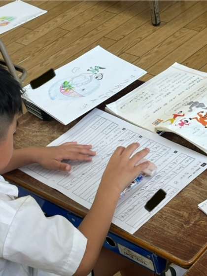 習いたてのカタカナを書いたり、どんな動物が何をもってきてくれたか読み取ったりしました。