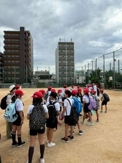 曇り空ですが、元気いっぱいに4年生が、遠足に出発しました。