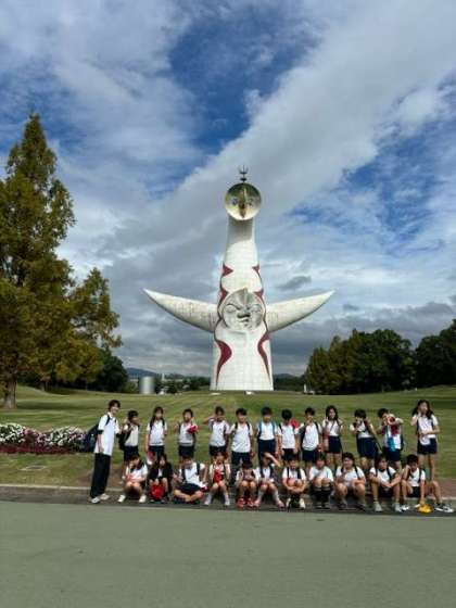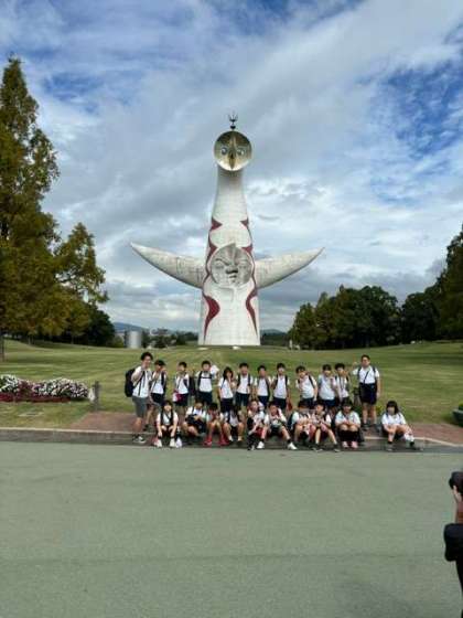 太陽の塔の前で、記念撮影!ハイ、チーズ!