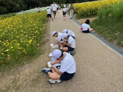 みんなコスモスのきれいなところを選んで上手に描いていましたよ。