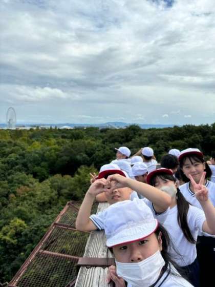昼食後、近くの展望台に登って、万博公園の遠くまで眺めました。風が爽やかで、気持ちが良かったです!