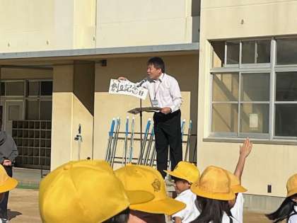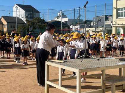 過ごしやすい気候となり、久しぶりに運動場で朝礼がありました。