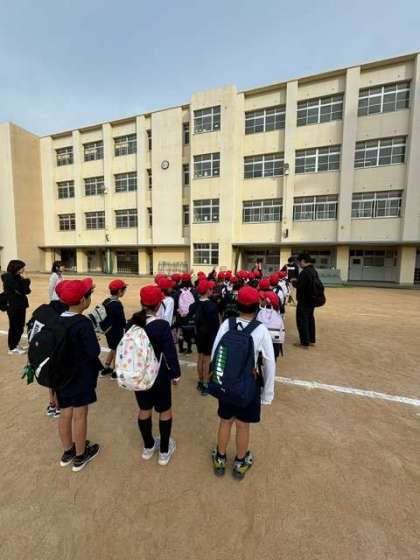 少し肌寒い朝ですが、青空のもと、3年生は元気良く出発しました!欠席も遅刻もなし。すばらしいスタートです。