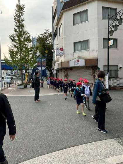 天保山に、予定よりも少し早く到着しました。子どもたちも、海遊館や観覧車が見えてきて、テンションが上がってきました!