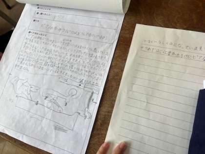 消しゴムやピアノ、ボールなど自分が調べたいもののひみつについて、まとめていました。