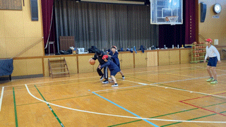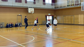 最後にコーチ2人対児童6チームで試合をしました。結果は引き分けです。1組の皆さん、がんばりましたね!