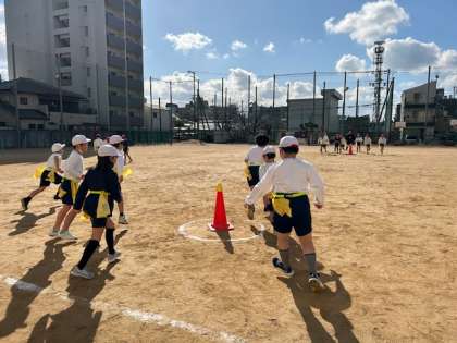 攻め手は腰につけているタグを守りながら相手のコーンを狙います。